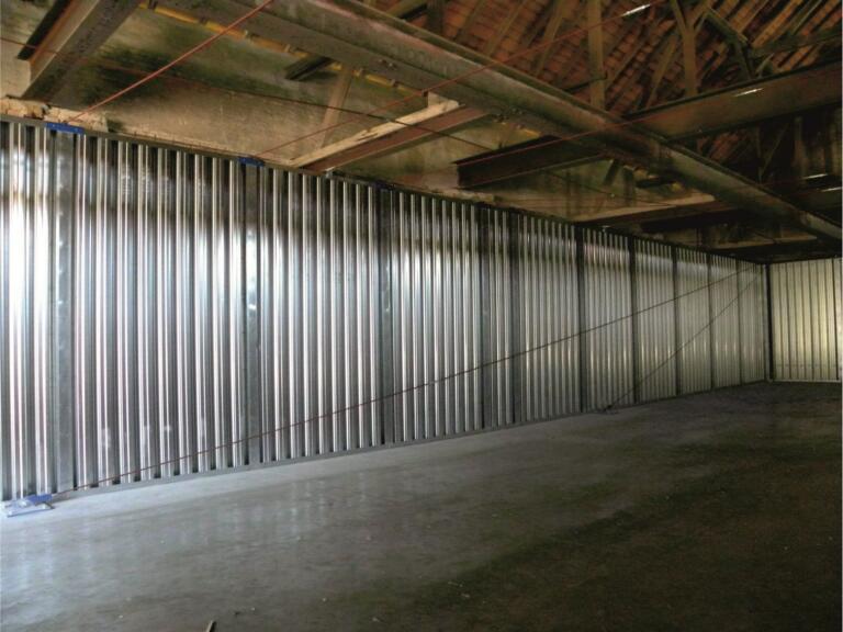 Nos cloisons modulaires en tôle trapézoidale sont livrées avec des cadres galvanisés prémontés.
