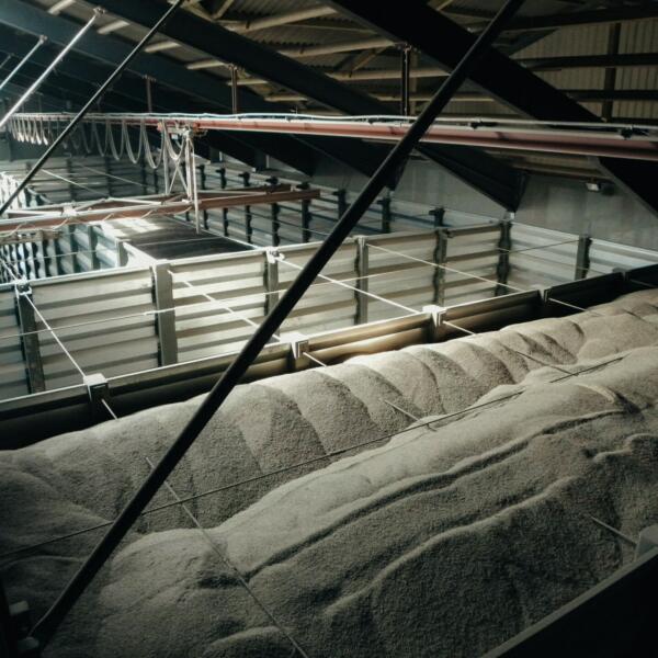 Stockage à plat avec des composants standardisés allant jusqu’à 9m de hauteur. Le mur et les supports du silo peuvent être utilisés comme mur extérieur du hall de stockage.