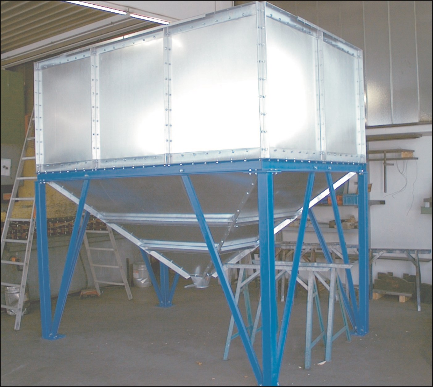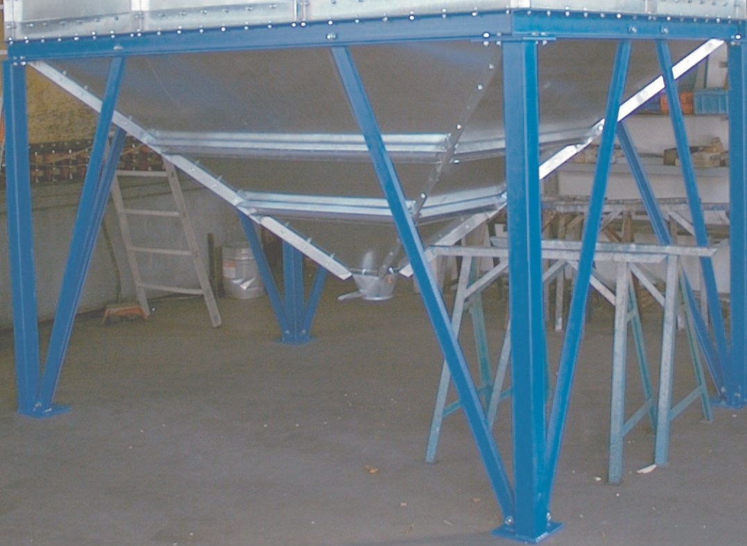 Für unsere Viereckzelle ist ein 60° Trichter standardmäßig erhältlich. Nun können Sie problemlos mehlige und schwer auslaufende Schüttgüter sowie Fertigfutter lagern.